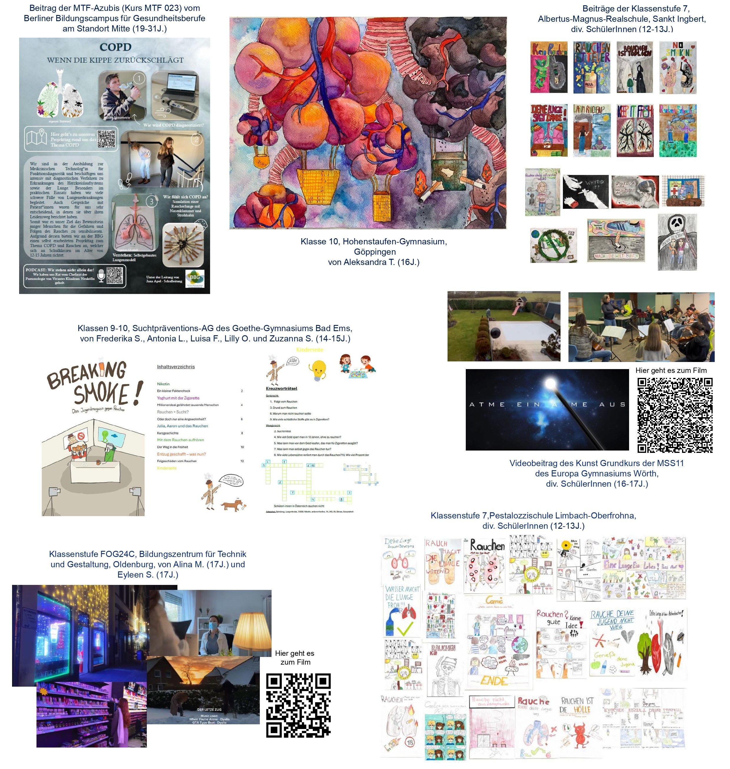 Als ich vom Wettbewerb der Deutschen Lungenstiftung erfahren habe, wollte ich mich genau mit diesem Problem beschäftigen – und eine kreative Lösung anbieten. Wer es so macht wie auf meinem Kunstwerk, kann ganz ohne sich die Lunge kaputtzumachen in einer „Raucherecke“ stehen, sich mitfreuenden unterhalten und einfach dabei sein. Denn in einer Gruppe rauchender Jungs steht einer mittendrin und pustet: ein paar Seifenblasen!
