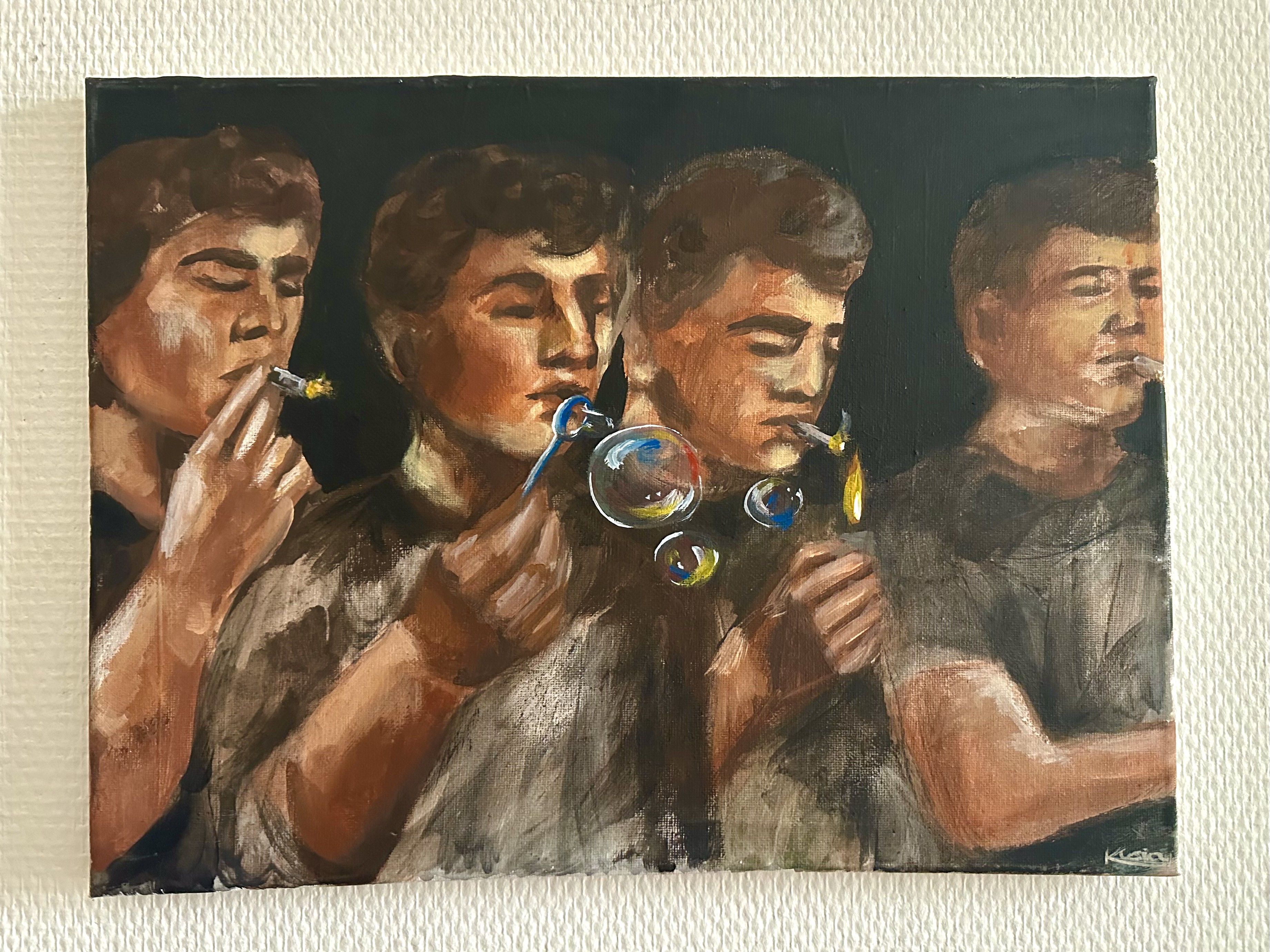 Ich allein werde die Welt (und erst recht meine Altersgruppe ) nicht „rauchfrei“ machen. Und ich halte auch nichts von dem moralischen Zeigefinger, der anderen die Zigarette aus der Hand schlägt, damit erreicht man doch meistens eher das Gegenteil. Manchmal, wie auf dem Kunstwerk zu sehen ist, reicht es, Alternativen aufzuzeigen. Und wer weiß – vielleicht stehen eines Tages nur noch Grüppchen von Teenagern und jungen Erwachsenen in Straßenecken, vor Clubs und auf Hauspartys, die fröhlich ihre Seifenblasen pusten. Denn sind wir mal ehrlich: Es sieht doch soooo viel schöner aus! (Oh, und riechen tut es auch besser!)